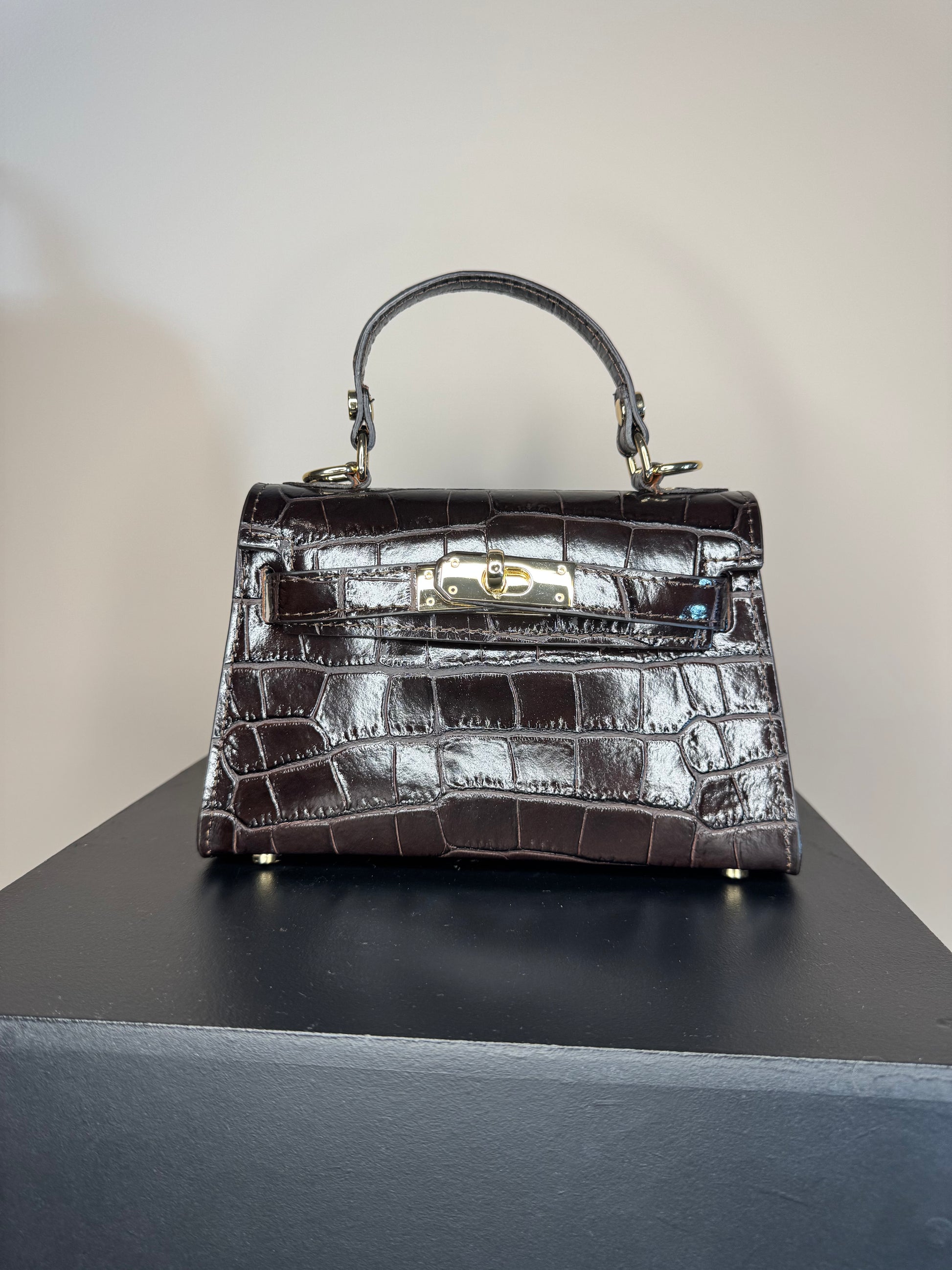 Leren tas met croco motief voor een luxe look πβ¨ Te dragen als handtas of als crossbody bag, perfect voor elke gelegenheid ππ« De tas heeft goudkleurige details die het design compleet maken π Met een fijne ruimte van binnen voor al je essentials ππ€