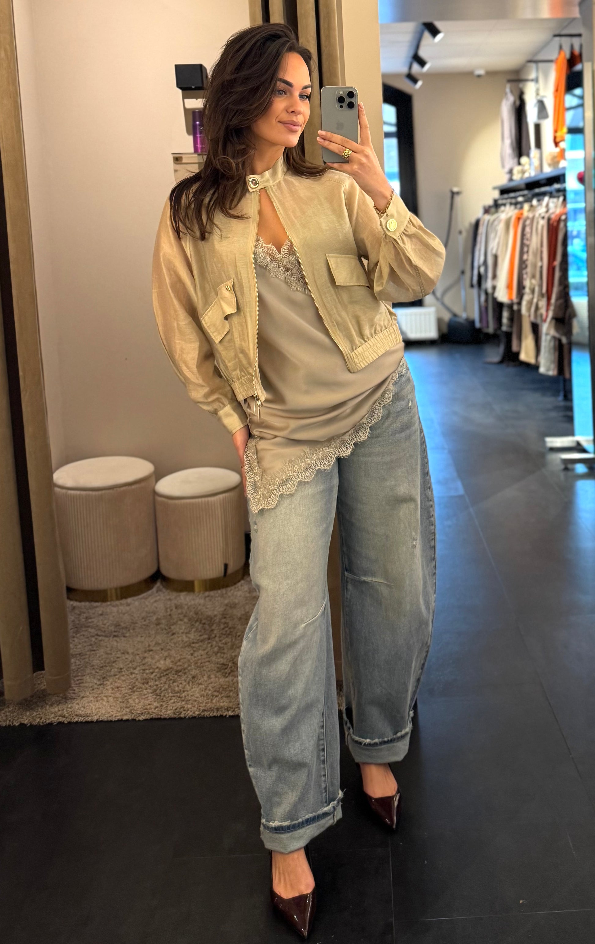 De trend van het moment! 🌟 Deze mooie satijnen top met kanten details is eindeloos mee te combineren ✨🖤 Onder een blazer of sweater, het is net welke look jij wilt creëren 👚💼 Shop de top nu in de luxe kleur! 🤎💫