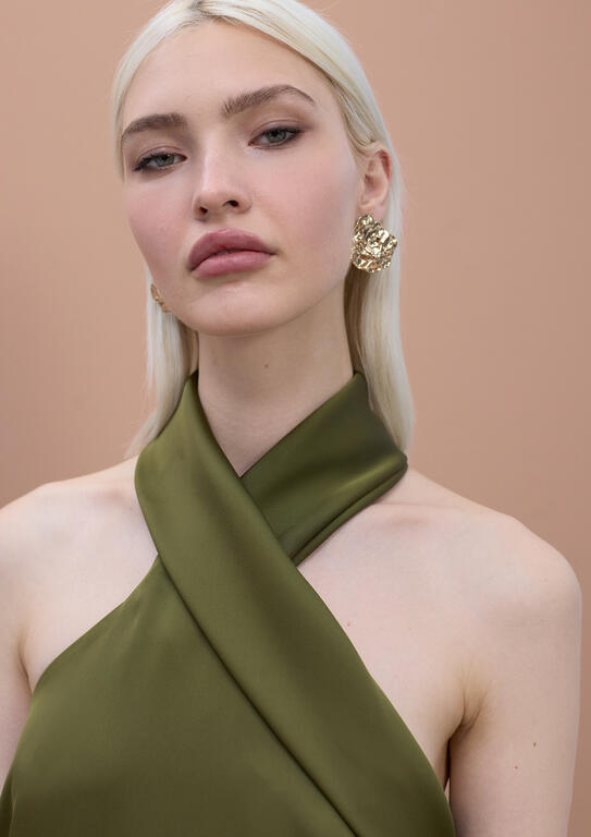 Lange satijnen jurk in de kleur groen voor een luxe uitstraling πβ¨ De jurk is perfect voor een bruiloft of voor een chique gelegenheid ππ₯ Vrouwelijk, sexy en elegant - deze jurk laat je stralen op elk feest π«π Shop dit pareltje nu en steel de show! β¨